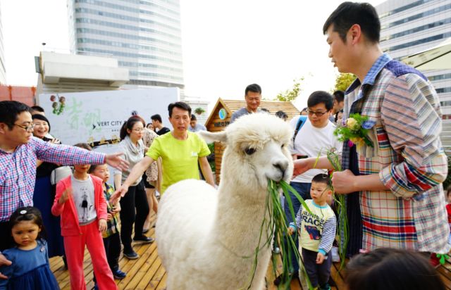日前,长宁来福士广场顶层开了一家时尚版“农家乐”——崇明生态·万禾都市农场餐厅。屋顶空间满足了城市人对于回归自然的渴望。除了眺望城市,还可以和羊驼“禾花”来一次亲密接触。